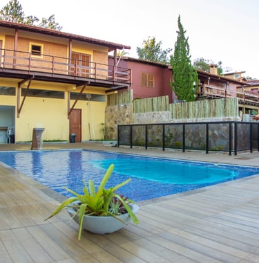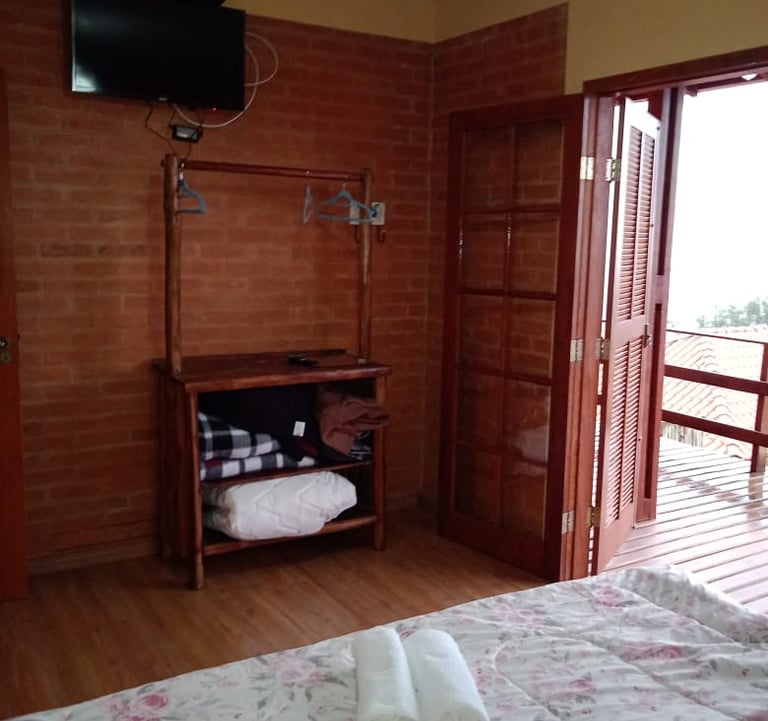 Casa com 120 m2 com 3 quartos/ 3 banheiros - suítes) - Suíte 1 - uma cama de casal, armário e, TV - Suíte 2 - uma cama de casal, armário e TV Quarto 3 - duas camas de solteiro, armário, TV. A casa tem capacidade ideal para três casais! Áreas uteis: Cozinha completa com fogão cook top de cinco bocas, forno a gás, forno elétrico, forno microondas, geladeira duplex, utensílios domésticos e água filtrada! Fornecemos roupas de cama e banho! Estamos na parte alta da Vila, a trezentos metros do centro e cinquenta metros da Igreja Matriz. Sendo que o Parque fica a três km da Vila